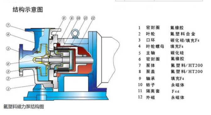 磁力泵的結(jié)構(gòu)及組成磁力泵的各部件:磁力泵由泵,磁力傳動(dòng)器以及電動(dòng)機(jī)三個(gè)部分組成,而磁力傳動(dòng)器又由外磁缸,內(nèi)磁缸及不導(dǎo)磁的隔離套組成。