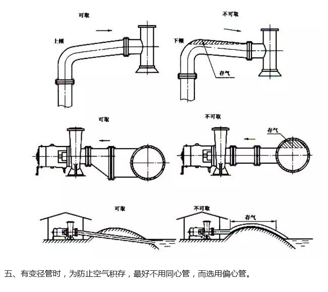 泵出口管道卜的異徑管府靠近泵的出口。頂部吸人和排出的泵,在間距很小時,可采用偏心異徑管加大間距。