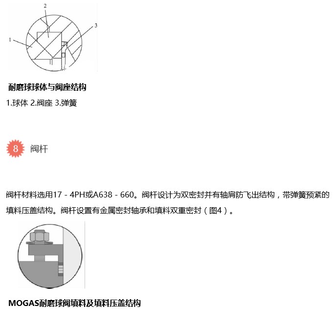 金屬密封耐磨球閥結(jié)構(gòu)適用于輸送黑水、渣水及水煤漿等含固體顆粒的介質(zhì),閥門(mén)的球體和閥座用超音速噴涂(HVOF)JK117{(WC)/17Co}或閥座堆焊STL12#(D812)硬質(zhì)合金,大規(guī)模生產(chǎn)時(shí),應(yīng)采用數(shù)控研磨中心對(duì)球體和閥座實(shí)行高精度的研磨。閥桿有防止固體顆粒進(jìn)入填料函的金屬和填料雙密封結(jié)構(gòu)。閥座彈簧具有防止灰渣堵塞結(jié)構(gòu)。球閥在其一側(cè)為最大工作壓力,另一側(cè)為大氣壓的最大壓差工況下,完成啟閉并保證可靠密封,水壓試驗(yàn)的泄漏等級(jí)應(yīng)達(dá)到ANSI/FCI70-2的ClassⅤ級(jí)。