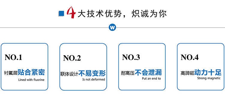 ZMD襯氟自吸磁力泵是我公司新一代耐腐蝕自吸磁力泵,它不但集氟塑料磁力泵的優(yōu)點(diǎn),而且具有自吸功能、無泄漏,這是以往的所有氟塑料磁力泵不能達(dá)到的,因此,該系列泵一推出就受到了廣大用戶的歡迎。該系列泵可廣泛適用于化工、有色金屬冶煉、農(nóng)藥、制酸制堿、造紙、酸洗工藝、稀土分離、電鍍、電子、化成箔、卸酸堿等行業(yè)或工作流程,是目前磁力泵品種中結(jié)構(gòu)新穎的產(chǎn)品之一,且高效節(jié)能、安全實(shí)用。