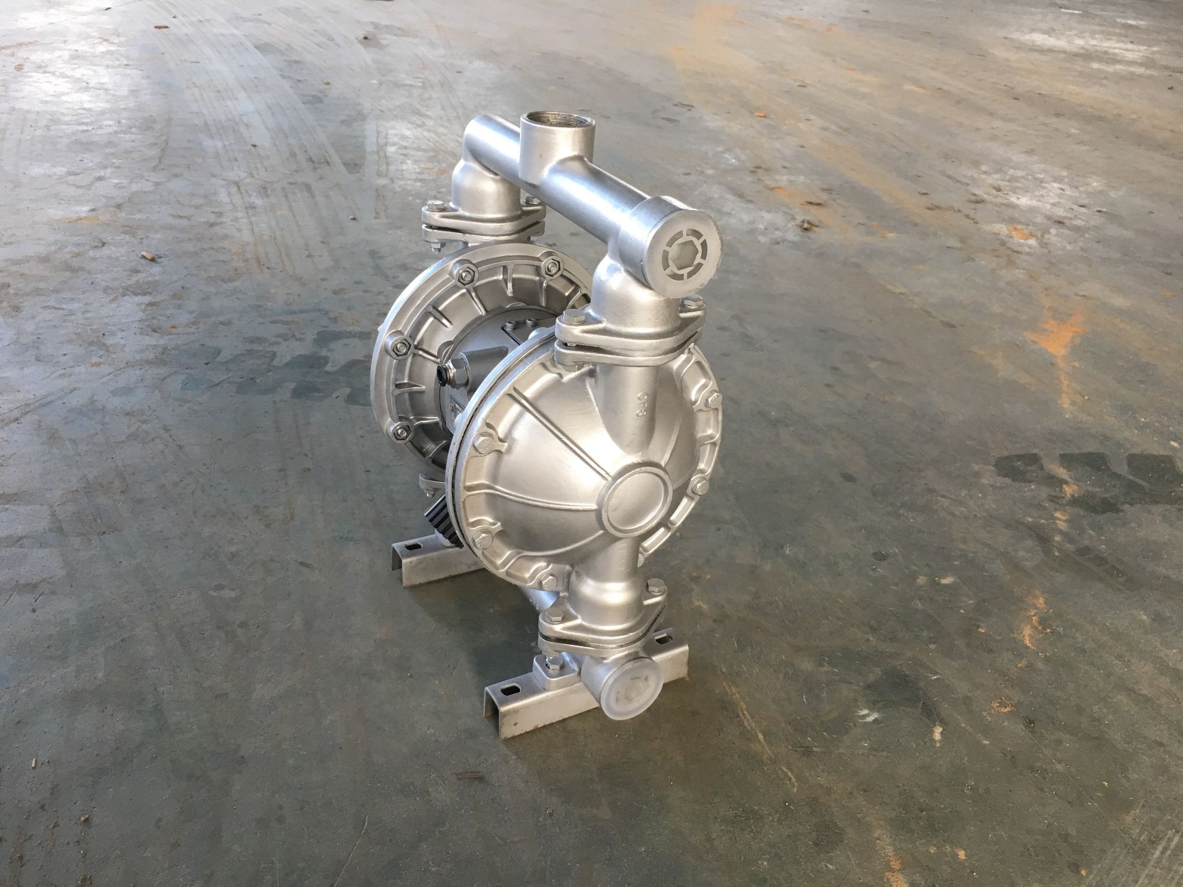 概述:隔膜泵是一種新型輸送機械,是目前國內新穎的一種泵類。采用空氣壓縮機壓縮空氣為動力源,對于各種腐蝕性液體,帶顆粒的液體,高粘度、易揮發、易燃、劇 毒的液體,均能予以吸