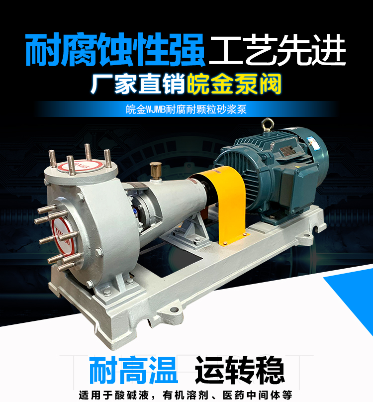可根據客戶需要配置相應的沖洗方案,廣泛應用于酸洗,環保脫硫,脫硝,化工,造紙,染料污水處理等領域。改泵運行穩定,抗汽蝕性能強,特別合適含有顆粒雜質的酸堿性有腐蝕介質。具有高效節能,噪音振動低,可靠性高,壽命長,品質好、且價格公道合理等優點,是化工,酸洗,環保,脫硫,污水處理的理想輸出設備。