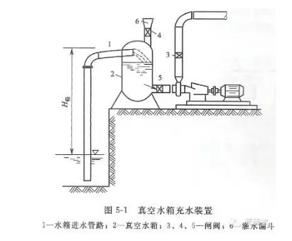 真空引水裝置,是通過(guò)進(jìn)水管路先把水吸入密閉水箱中,水泵從水箱中吸水,使水箱中產(chǎn)生一定的真空值,在此真空值的作用下,水從進(jìn)水池經(jīng)進(jìn)水管路進(jìn)入水泵真空引水裝置。