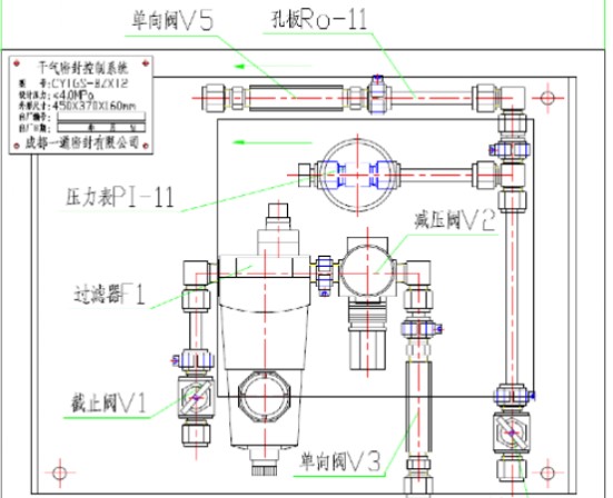 經過減壓閥V2,(減壓到所需壓力0.5MPa,為干氣密封提供穩定的密封氣);