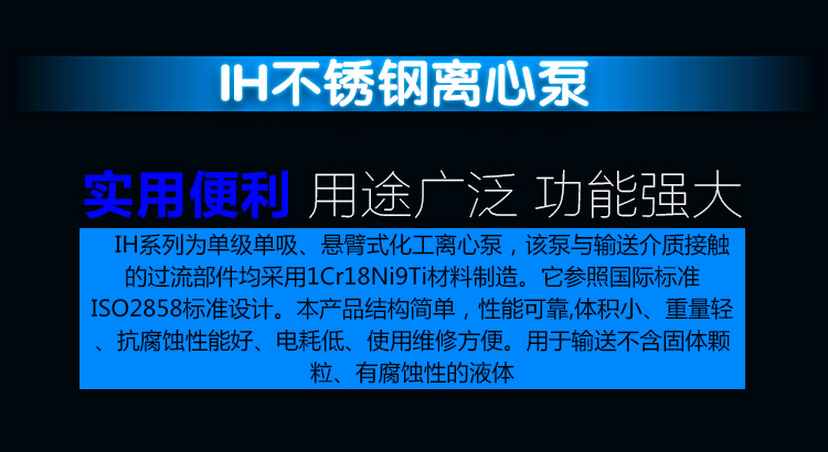 IH-J不銹鋼堿液離心泵具備耐腐蝕,高效節(jié)能、抗汽蝕性能強(qiáng),適用溫度范圍廣。具有運(yùn)行穩(wěn)定、噪音振動(dòng)低、可靠性高、壽命長等優(yōu)點(diǎn)